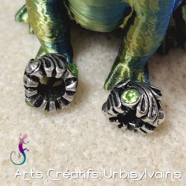 Lot de 2 perles ouvragées en métal argenté et strass vert pour bracelet ou collier européen