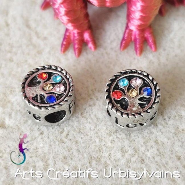 Perle arbre de vie en métal argenté et strass multicolores pour bracelet ou collier européen