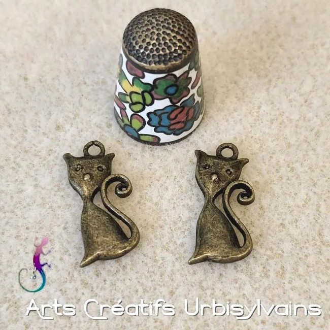 Lot de 4 breloques chat en métal bronze 25x12mm