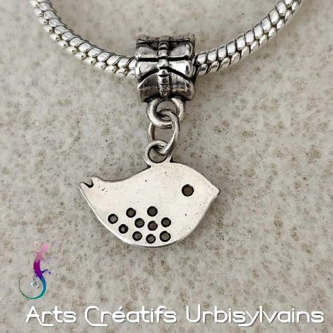 Bélière en métal argenté et breloque oiseau en métal argenté pour bracelet ou collier européen