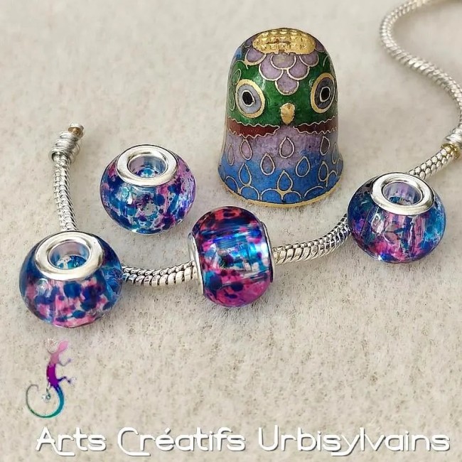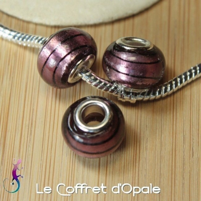 Lot de 2 perles en verre marbré violet et rose pour bracelet ou collier européen