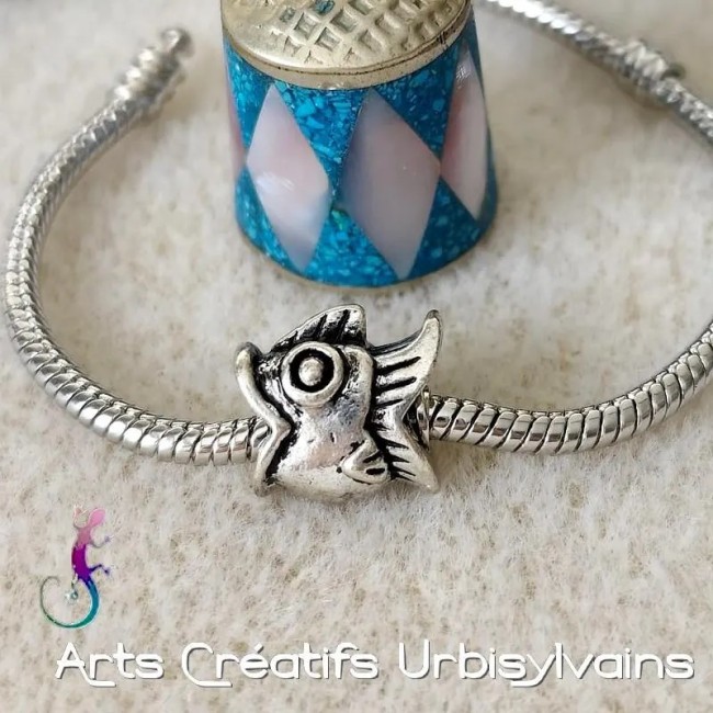 Perle en forme de poisson en métal argenté pour bracelet ou collier européen