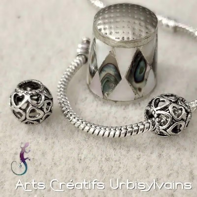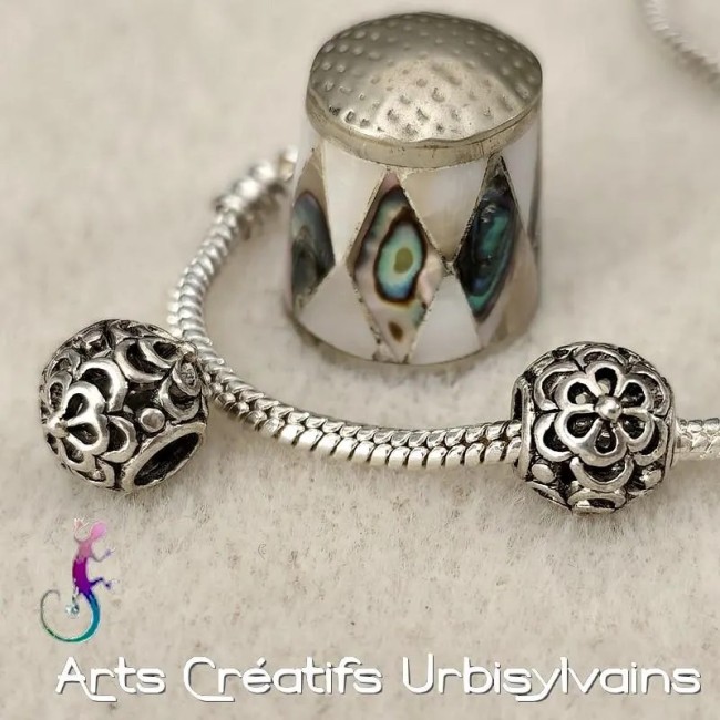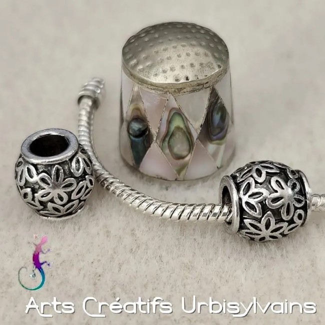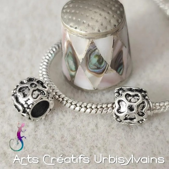 Lot de 2 perles ouvragées en métal argenté pour bracelet ou collier européen