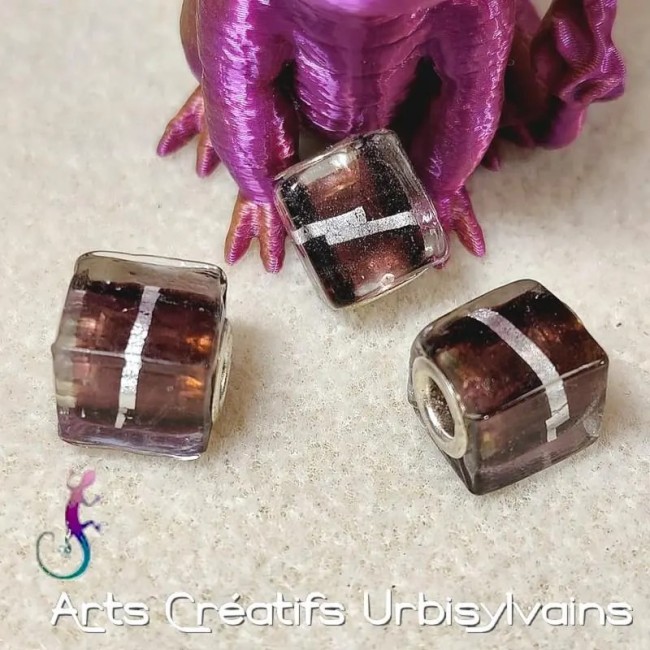Lot de 2 perles cubiques en verre lampwork violet pour bracelet ou collier européen