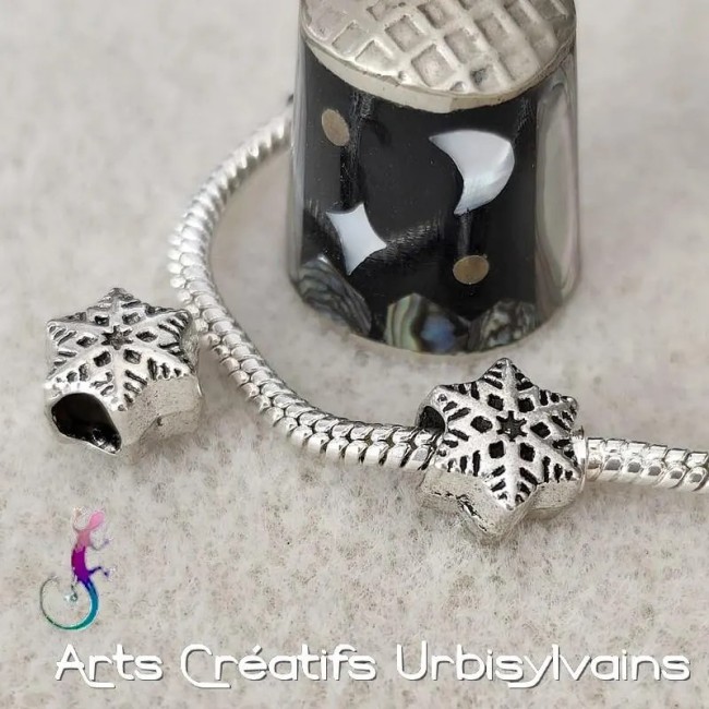 Lot de 2 perles "étoile" en métal argenté pour bracelet ou collier européen