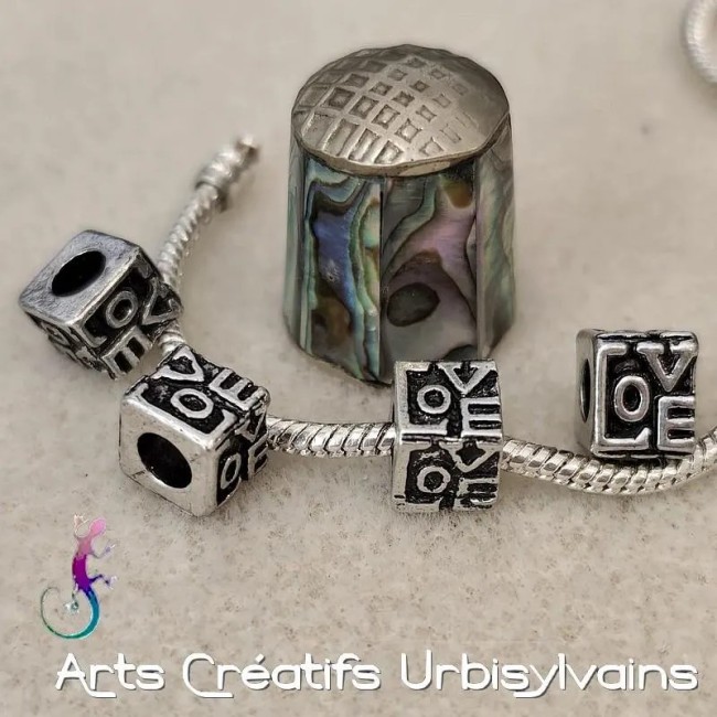 Lot de 4 perles cube "Love" en métal argenté pour bracelet ou collier européen