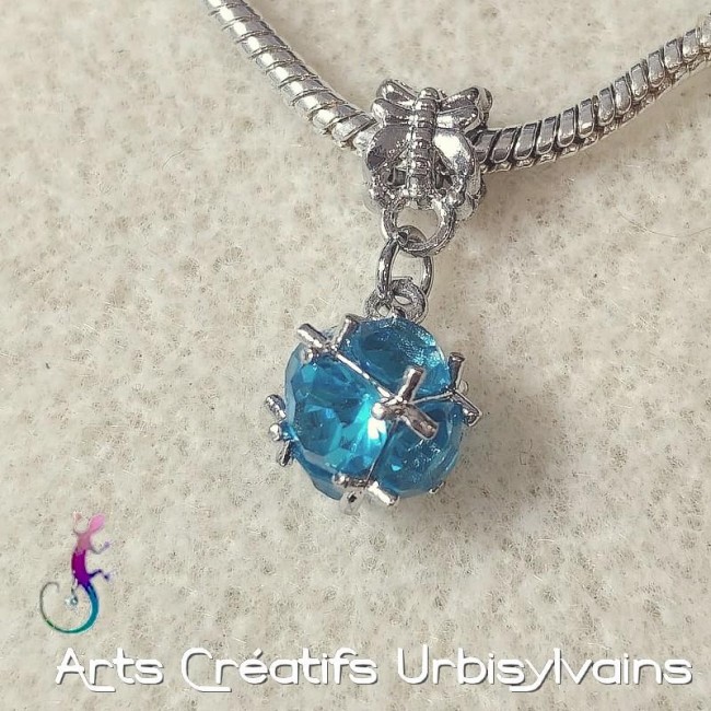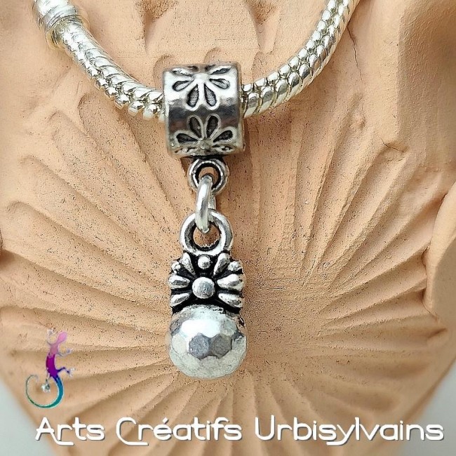 Bélière en métal argenté et pendentif boule facettée pour bracelet ou collier européen