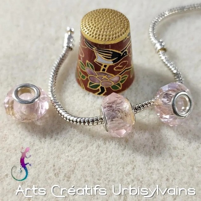 Lot de 3 perles en verre facetté rose pale pour collier ou bracelet européen