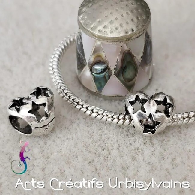 Lot de 2 perles cœur ethnique en métal argenté pour bracelet ou collier européen