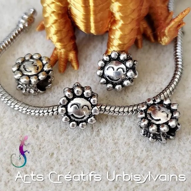 Lot de 4 perles soleil en métal argenté pour bracelet ou collier européen