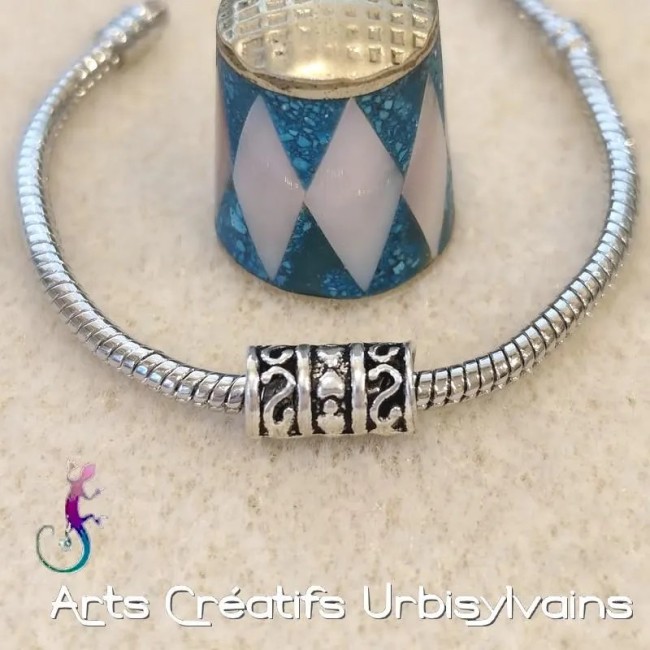 Lot de 2 perles anneaux ouvragés en métal argenté pour bracelet ou collier européen