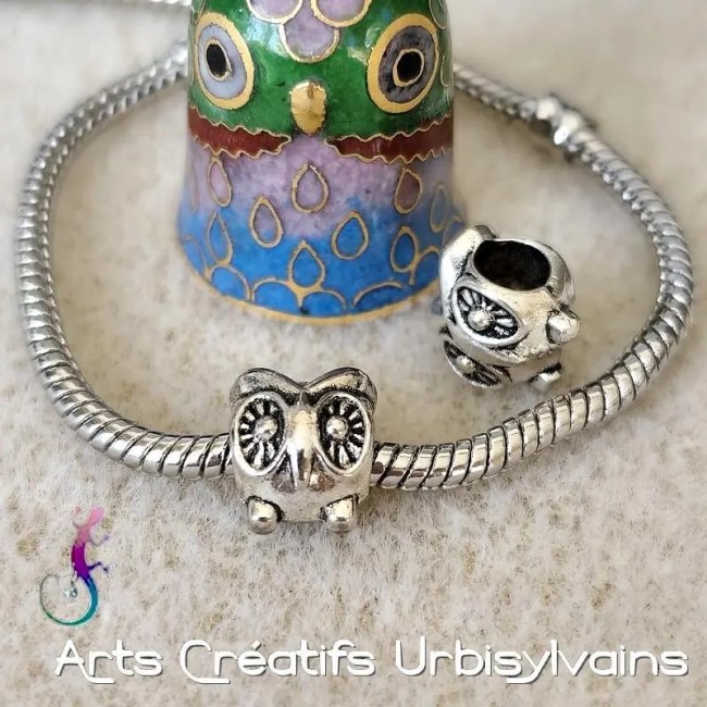 Lot de 2 perles hiboux en métal argenté pour bracelet ou collier européen