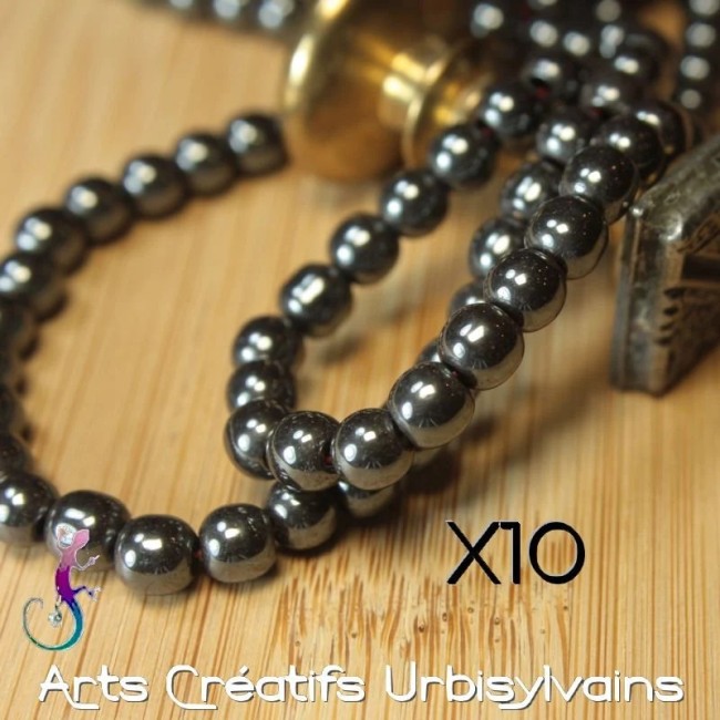 Lot de 10 perles rondes en hématite foncée 6mm