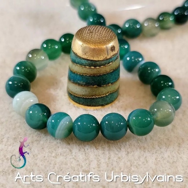 Lot de 10 perles rondes en agate verte naturelle 8mm