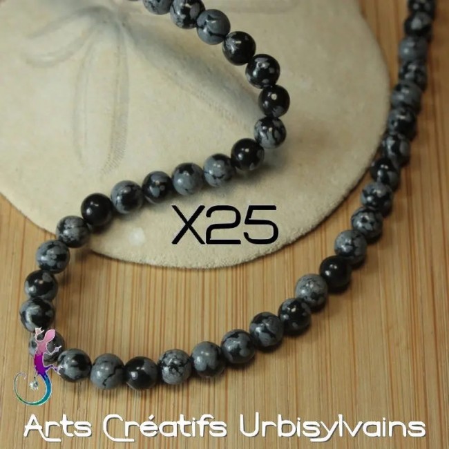 Lot de 25 perles rondes en obsidienne "flocon de neige" naturelle 4mm