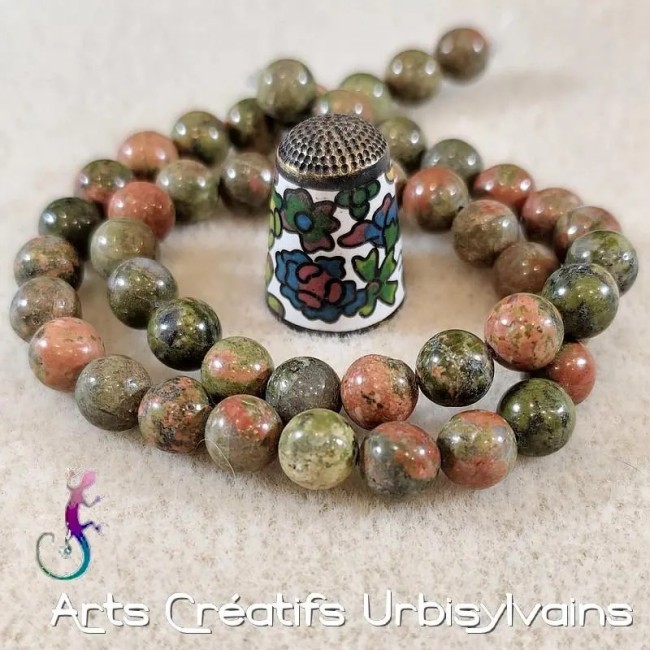 Lot de 10 perles rondes en unakite verte naturelle 8mm