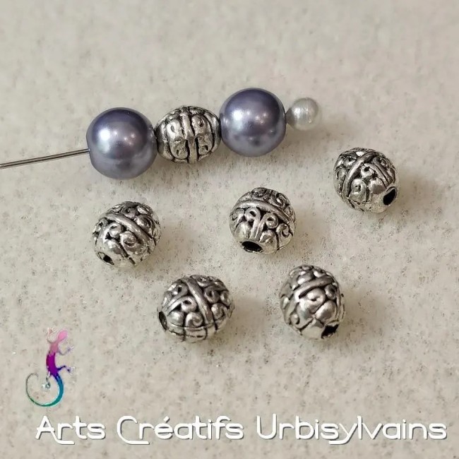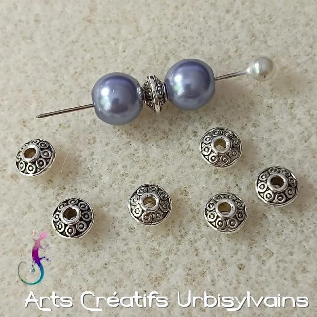 Lot de 10 perles intercalaires ethniques en métal argenté antique 7mm