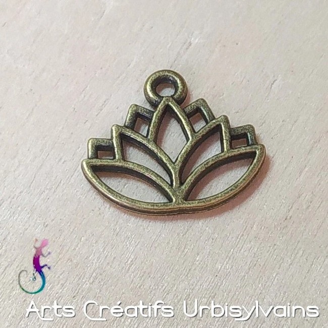 Lot de 4 pendentifs fleur de lotus en métal bronze 24x20mm