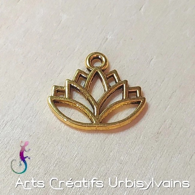 Lot de 4 breloques fleurs de lotus en métal doré 17x14mm